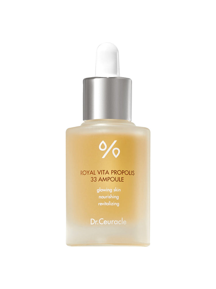 Dr.Ceuracle Royal Vita Propolis 33 Ampoule is a brightening and nourishing facial serum formulated with 33% propolis extract and royal jelly extract to revitalize dull, tired skin. Packed with vitamins, antioxidants, and natural moisture boosters, it delivers deep hydration, radiance, and elasticity. This lightweight yet powerful ampoule helps restore a healthy glow and strengthens the skin’s natural barrier.