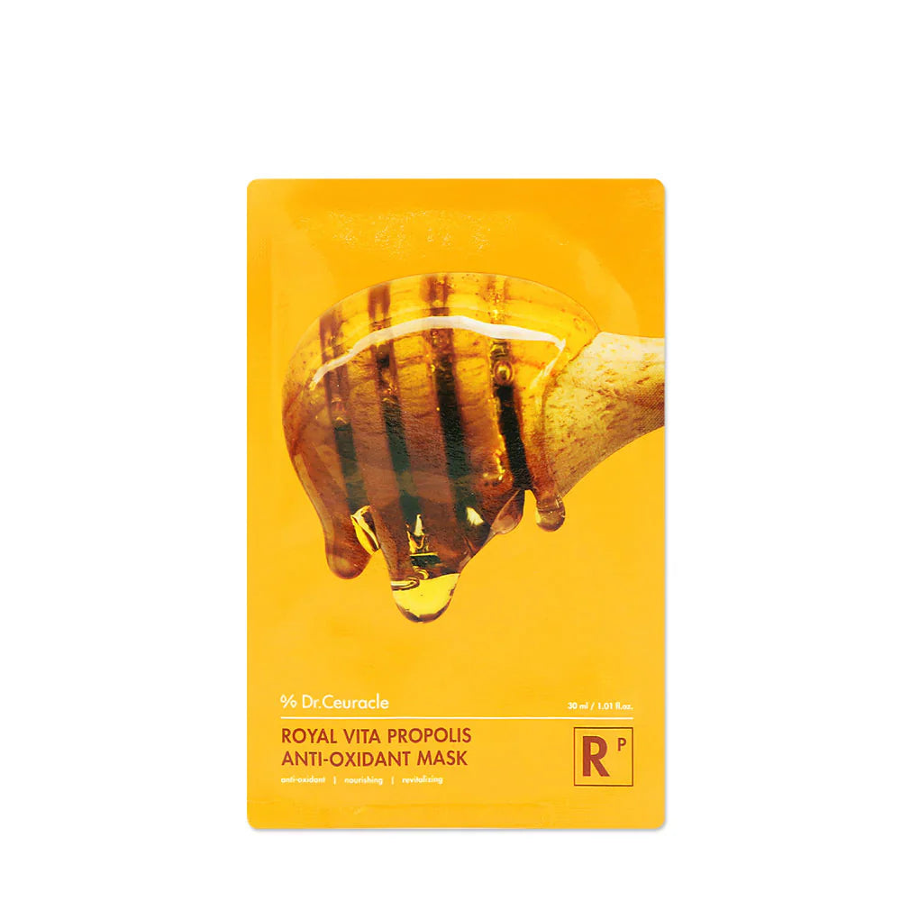 Dr.Ceuracle Vita Propolis Antioxidant Mask is a deeply nourishing and brightening sheet mask infused with 33% Propolis Extract, Royal Jelly, and a powerful Vitamin Complex. Each mask delivers an intensive antioxidant boost that revitalizes dull, tired skin, restoring a healthy glow and radiant complexion. The rich essence deeply hydrates and strengthens the skin barrier, leaving the skin smooth, luminous, and well-nourished after every use.